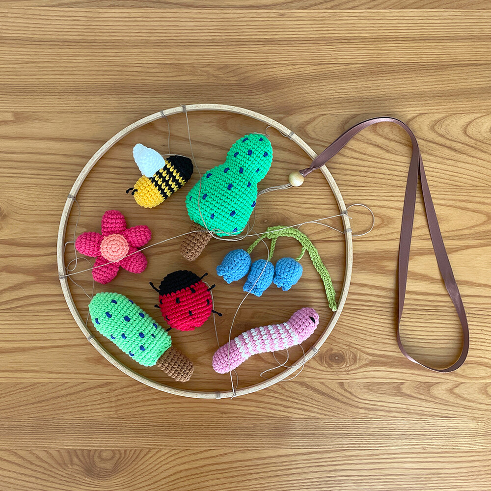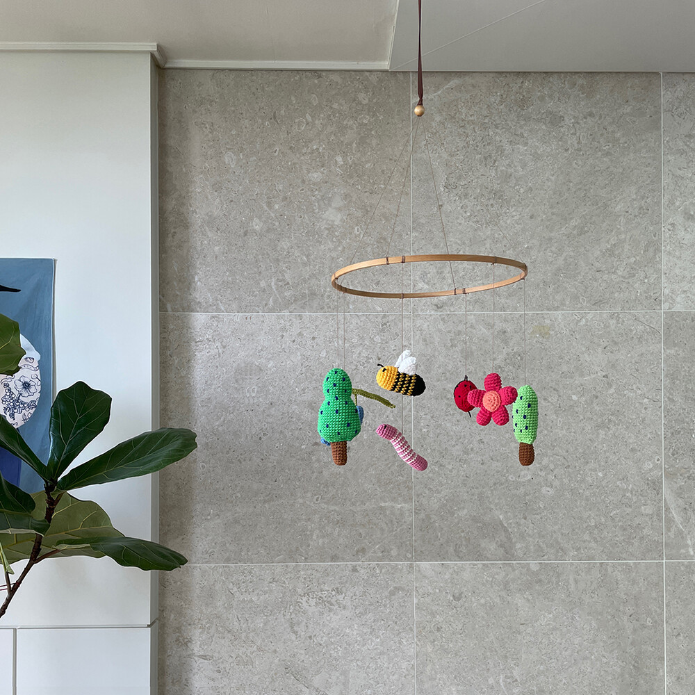 7개 모빌 아이템 : 나무1, 나무2, 꿀벌, 애벌레, 무당벌레, 꽃1, 꽃2